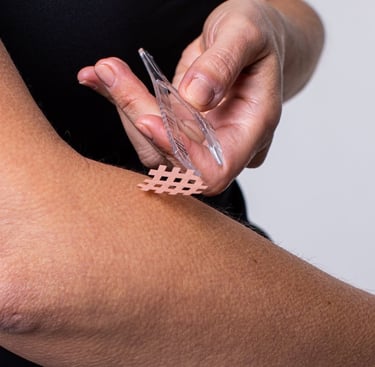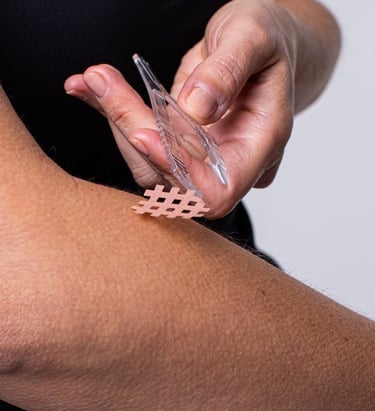 De pleisters werken via acupunctuurpunten en energiebanen. Het rasterpatroon helpt om blokkades op te heffen en de energiestroom in balans te brengen. Ik plaats de pleisters gericht op specifieke punten, afhankelijk van je (pijn) klacht of behoefte.